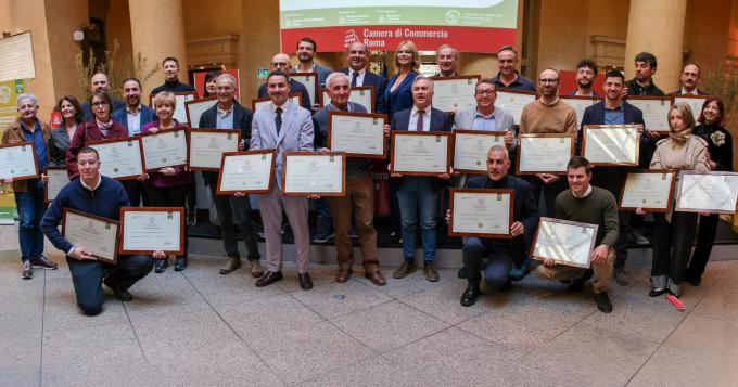 Nella Sala del Tempio di Vibia Sabina e Adriano della Camera di Commercio di Roma, la cerimonia di premiazione dei vincitori del "Premio Roma Evo", XXXIII Concorso regionale per i migliori olii extravergine di oliva del Lazio.
